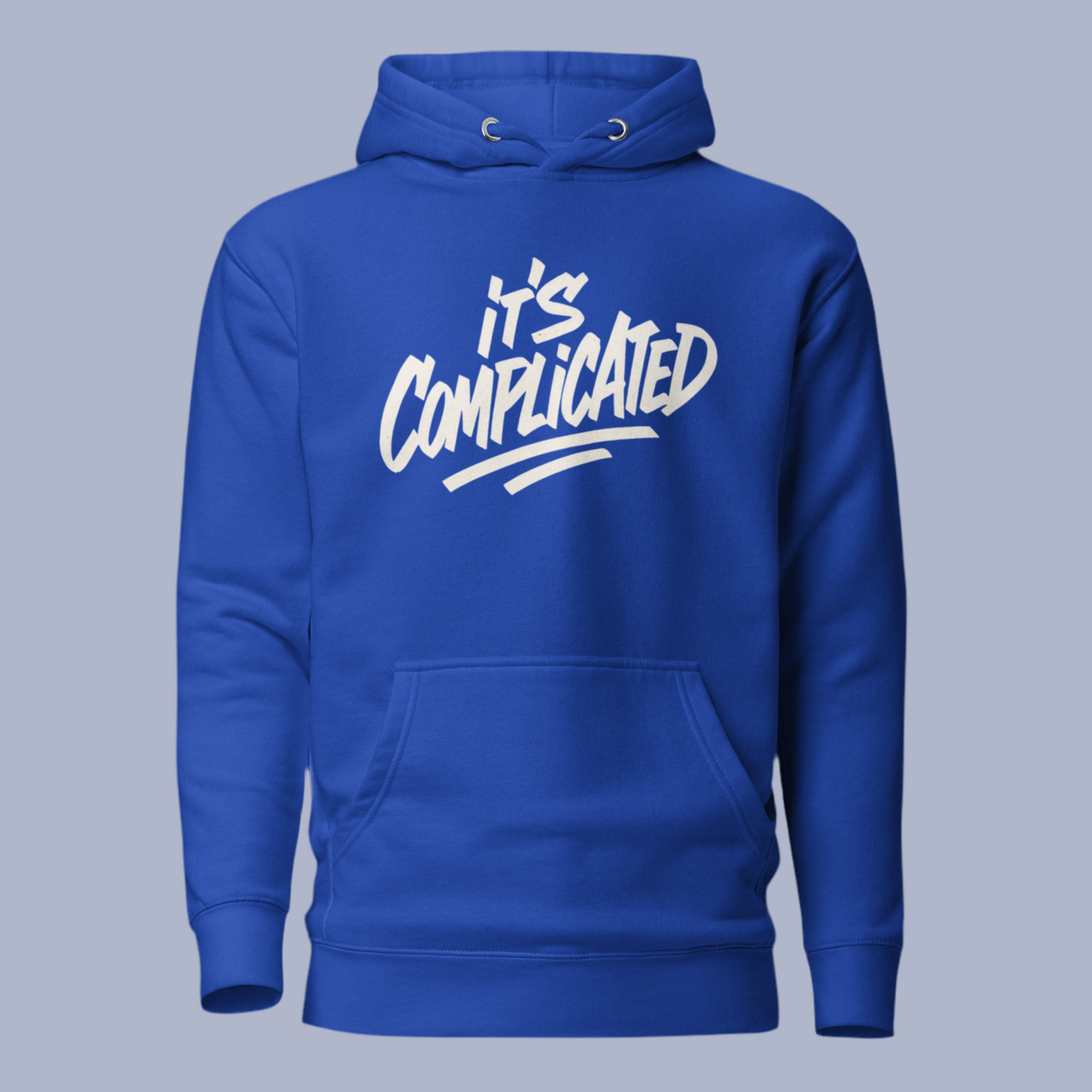 Front view of Guardfashions Complicated Pullover in Royal blue, minimalist streetwear hoodie with clean design and bold typography theme.